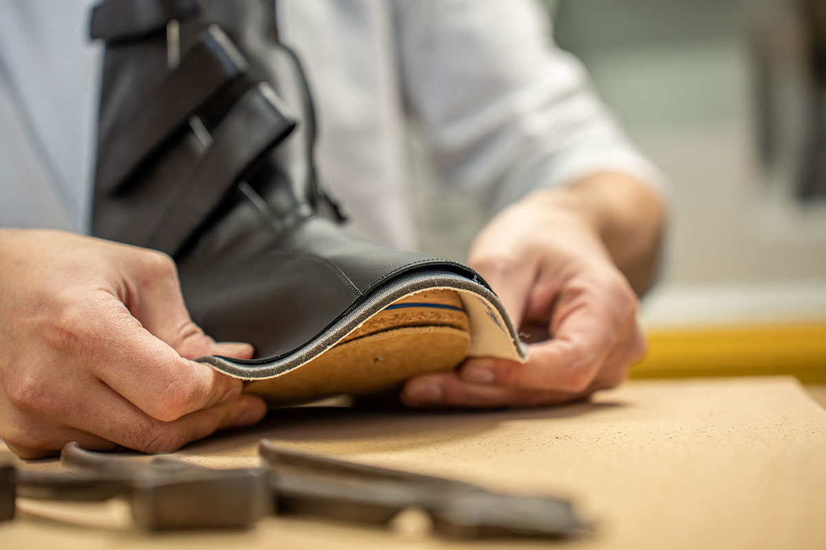 Bei der Anprobe überprüfen wir den Sitz der Schuhe und nehmen bei Bedarf gezielte Anpassungen für optimalen Tragekomfort vor.